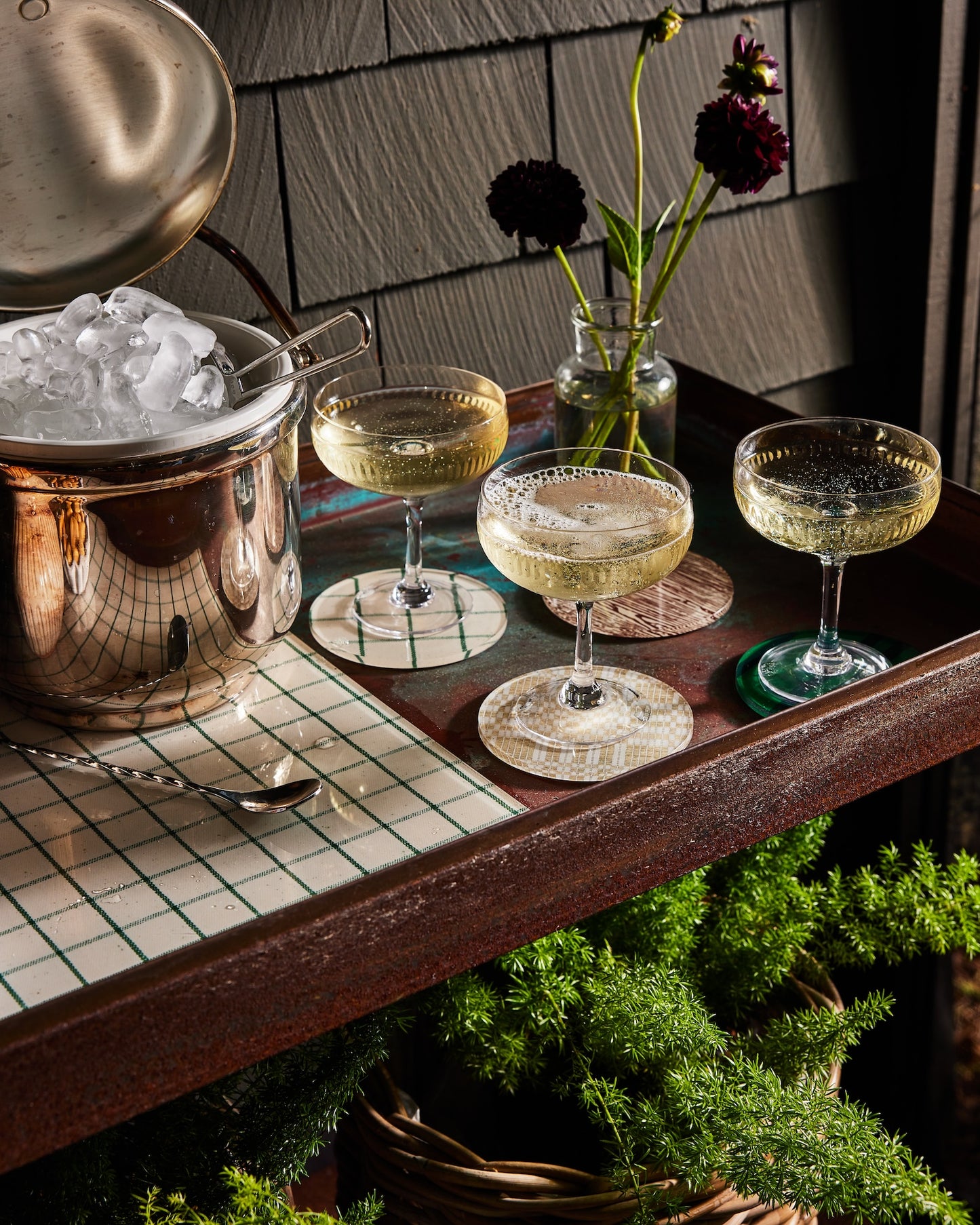 This one looks and tastes like summer. Serve shaken, in a coupe glass, with a lemon rind and delight will abound. Looks especially lovely atop our Starbuck or Waller coasters. Cheers!